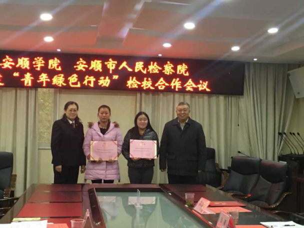 12?8日下午,安顺学院与安顺市人民检察院共建“青年绿色行动”检校合作会议及合作协议签订仪式在安顺学院会议室举行。安顺市人民检察院党组成员、副检察长曾晓红,生态环保检察处处长罗蒙等,安顺学院党委委员、副校长令狐荣涛教授、团委书记杨文波、相关工作人员及我校资源与环境工程学院师生代表出席会议。会议由团委书记杨文波主持?/p>